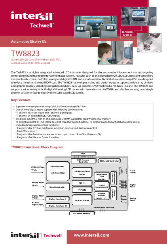 TW8823 Advanced LCD Controller with On-chip MCU and 65K Color 16-bit OSD Support