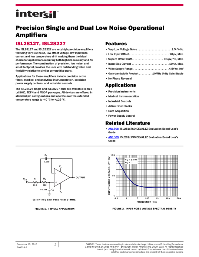 ISL28127 Precision Single and Dual Low Noise Operational Amplifiers