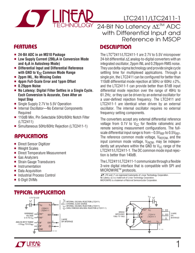 LTC2411 24-Bit No Latency Delta Sigma ADC with Differential Input and Reference in...