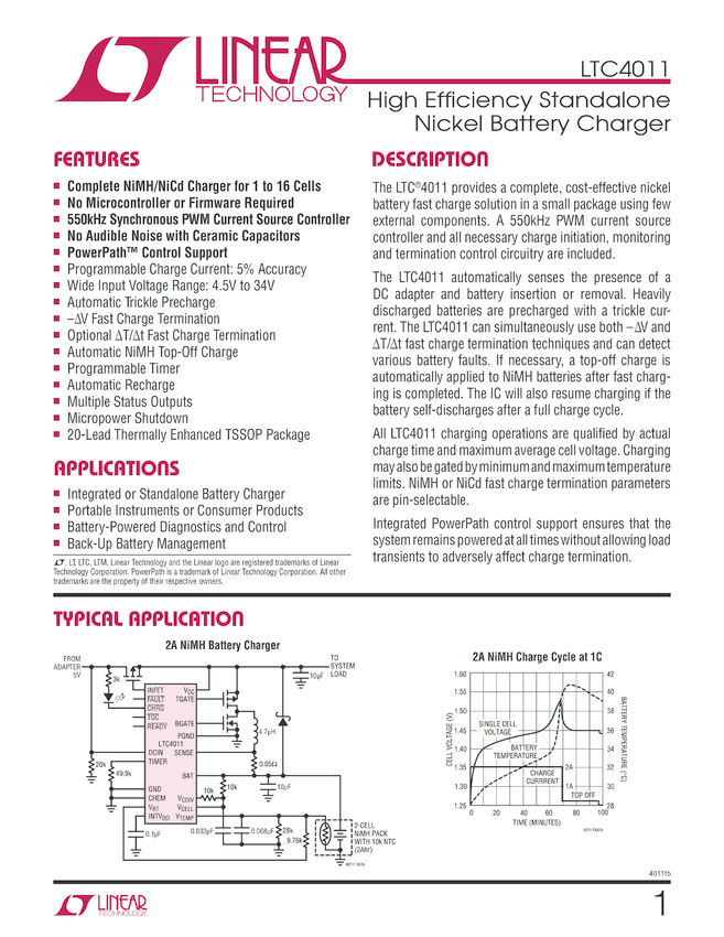 LTC4011 High Efficiency Standalone Nickel Battery Charger