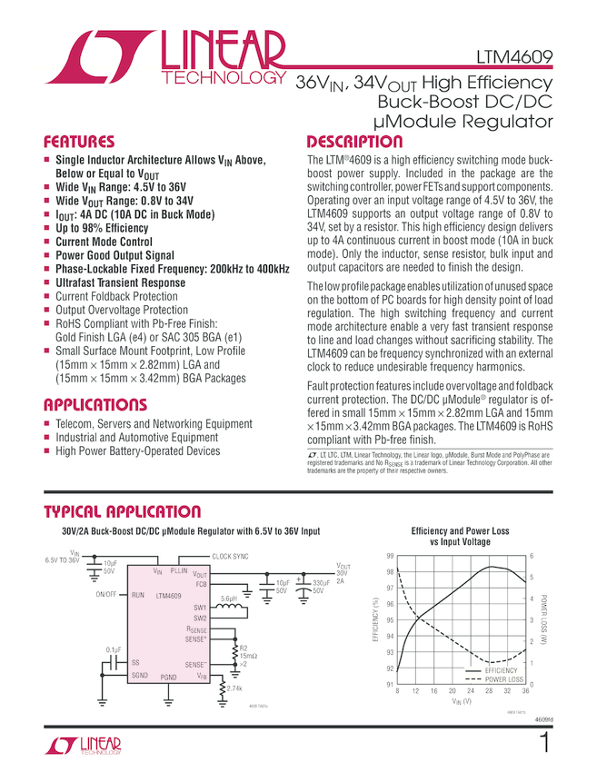 LTM4609 36VIN, 34VOUT High Efficiency Buck-Boost DC/DC uModule