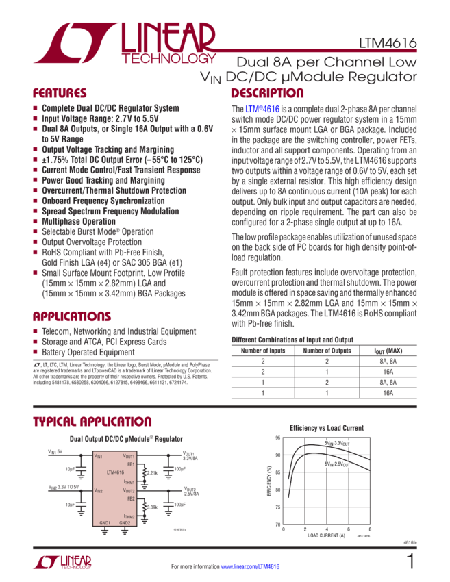 LTM4616 Dual 8A per Channel Low VIN DC/DC uModule