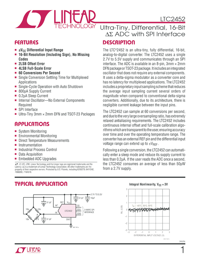 LTC2452 Ultra-Tiny, Differential, 16-Bit Delta Sigma ADC with SPI Interface