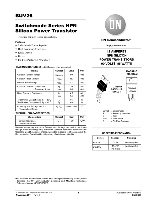 BUV26 20 A, 90 V NPN Bipolar Power Transistor