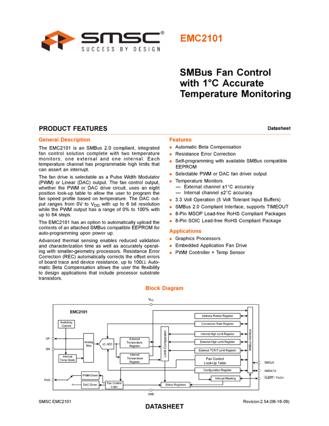 EMC2101 Fan Control with 1??C Accurate Temperature Monitoring Data Sheet (06/16/2009)