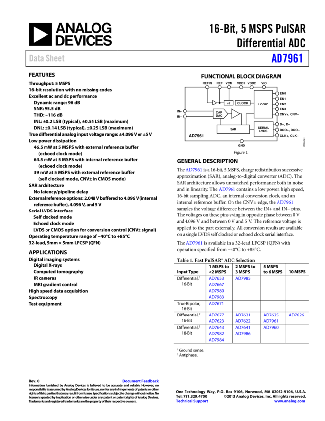 AD7961: 16-Bit, 5 MSPS PULSAR Differential ADC