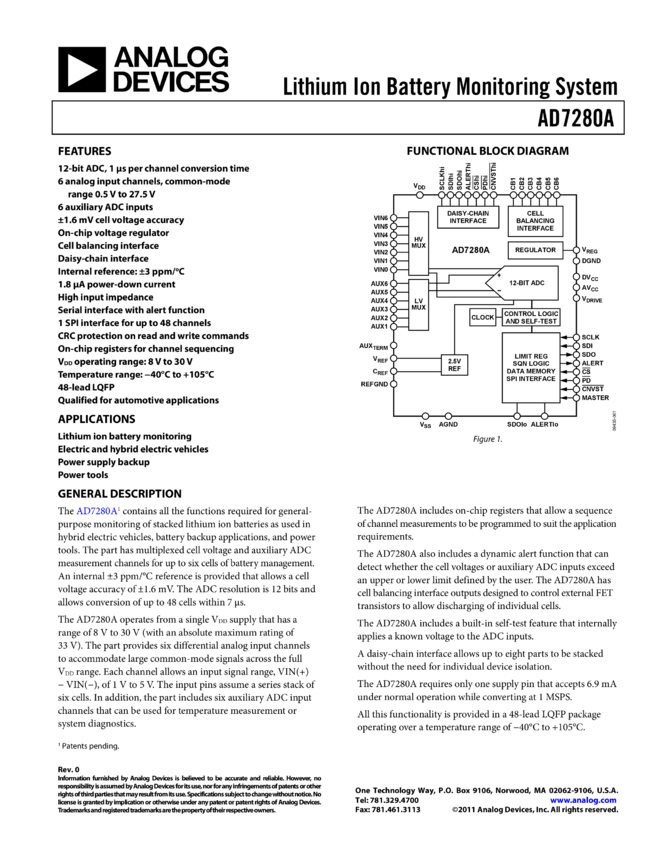Reference Circuit Available AD7280A: Lithium Ion Battery Monitoring System