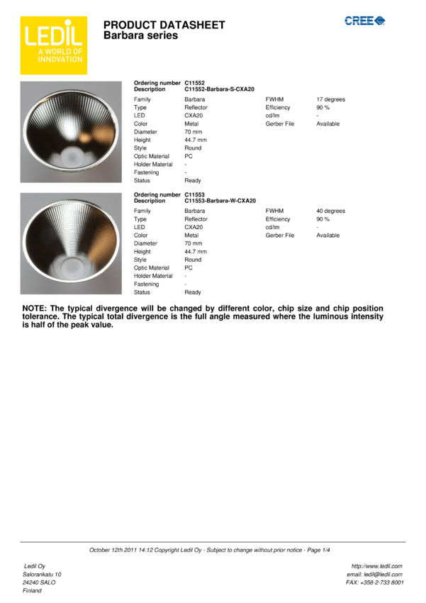 Reflektor BARBARA , Spot, , do diod LED High Power CREE seria CX20, średnica 70mm, Ledil