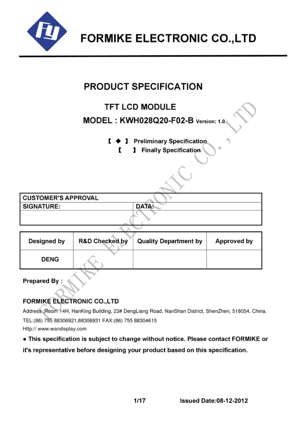 TFTF028D2-TP Panel TFT , 43.2x57.6mm, 240xRGBx320 pikseli, podświetlenie białe LED, wers...