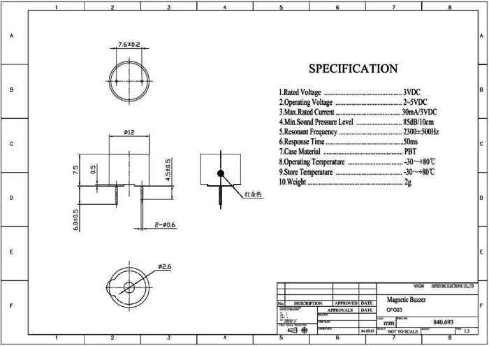 CFG03 Sygnalizator z obwodem generatora, 3V DC
