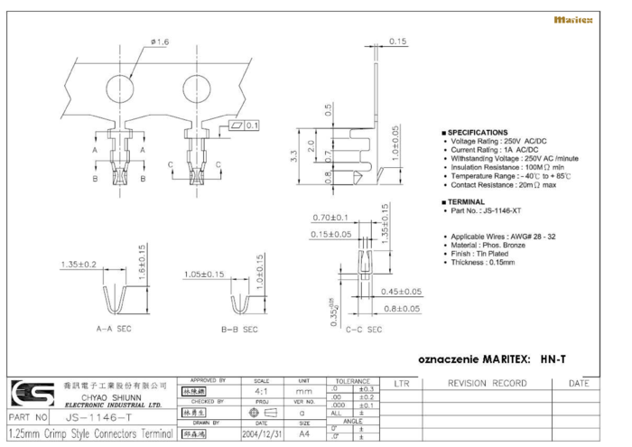 HNT-LF Metalowy styk, żeński, do korpusów złącz HN