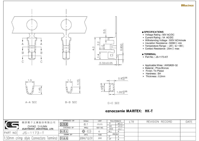 HKT Metalowy styk, żeński, do korpusów złącz HK