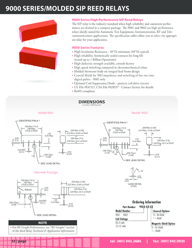 9001-05-00 Małogabarytowy przekaźnik kontaktronowy, ze stykiem zwiernym, prąd przełącz...