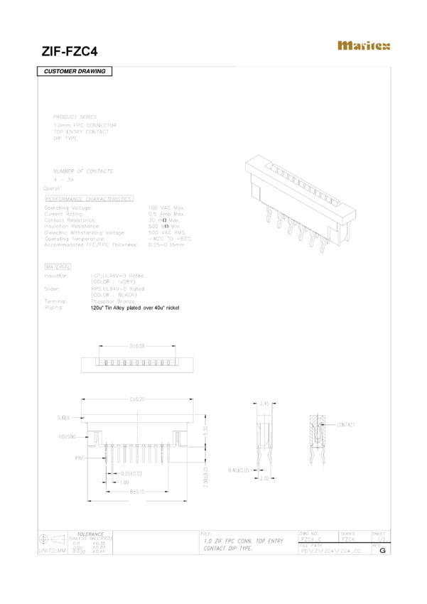 ZIFFZC428 Złącze żeńskie ZIF, 28-stykowe , pionowe