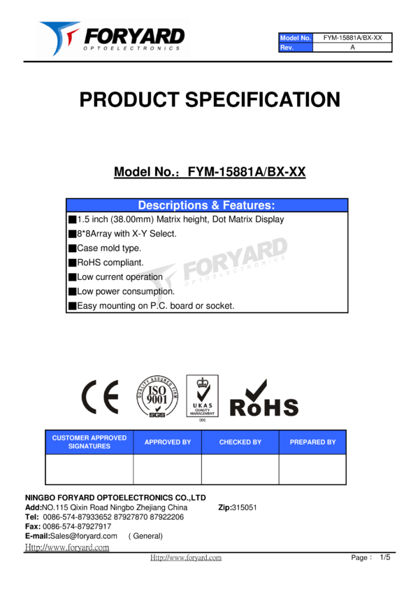 Matryca LED ultra bursztynowa, 1.5" (38.0x38.0mm), 8x8, czarne tło, dyfuzyjna, wspólna anoda, Foryard