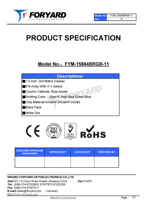 LTM1588RGB-AMBW-FOR Matryca LED, , 1.5" (37.8x37.8mm), 8x8, czarne tło, dyfuzyjna, wspólna anod...