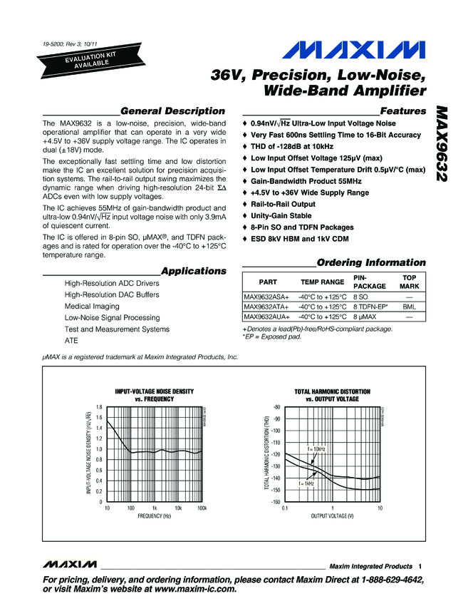 MAX9632 36V, Precision, Low-Noise, Wide-Band Amplifier