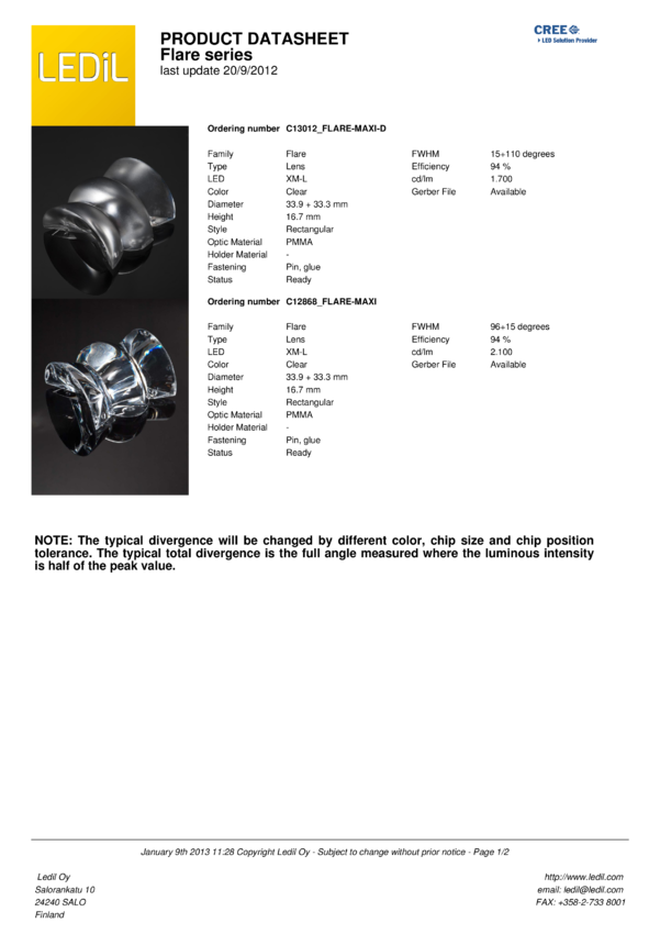 LENS-FLARE-MAXI-12868 Soczewka C12868 FLARE-MAXI do diod CREE serii XM-L, 96°x15°, Ledil/168