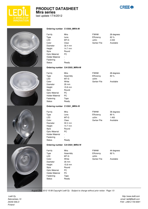 LENS-MIRA-MTG-W-12504 Soczewka MIRA-MTG-W 12504, Wide, , do diod LED High Power CREE seria MTG, ś...