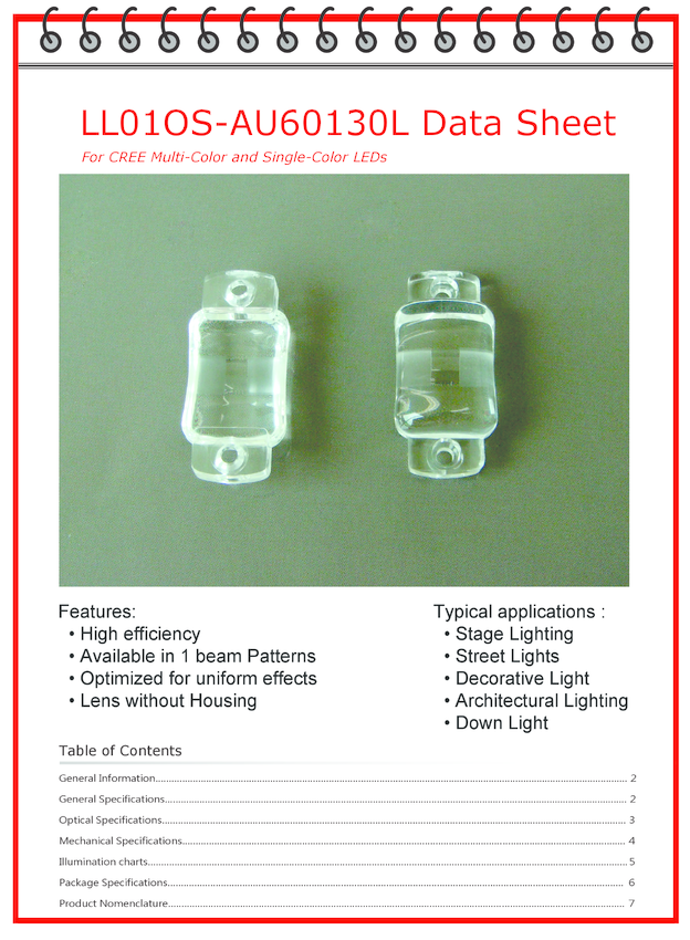 Soczewka LL01OS-AU60130L, , do diod LED High Power CREE seria XP, do oświetlenia ulicznego, LedLink