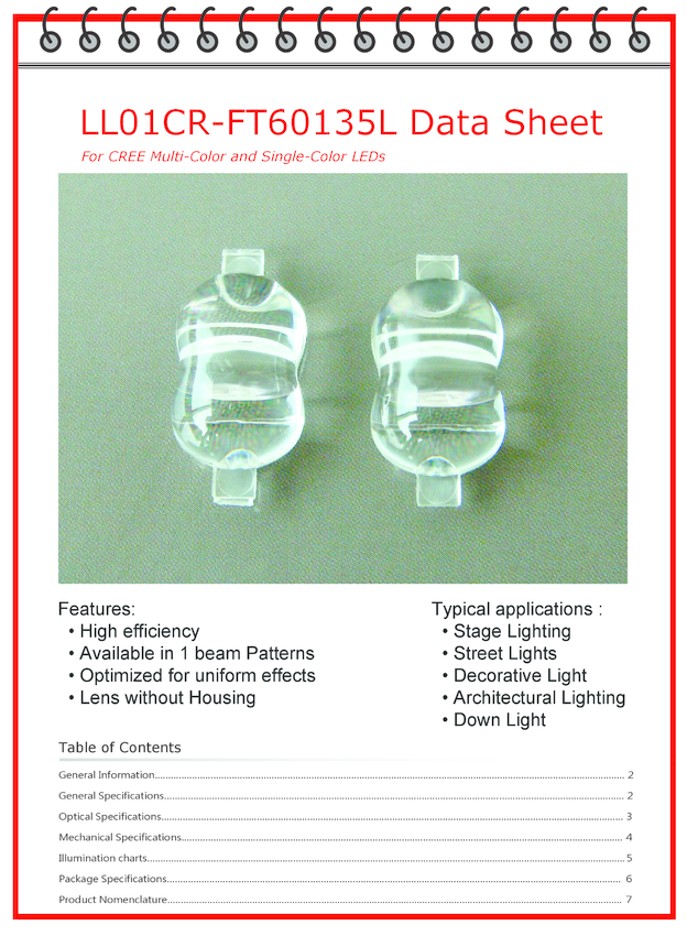 Soczewka LL01CR-FT60135L, , do diod LED High Power CREE seria XP, do oświetlenia ulicznego, LedLink