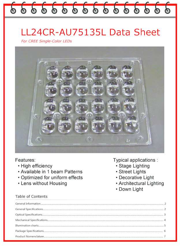 Soczewka LL24CR-AU75135L, , do 24 x diod LED High Power CREE seria XP, LedLink