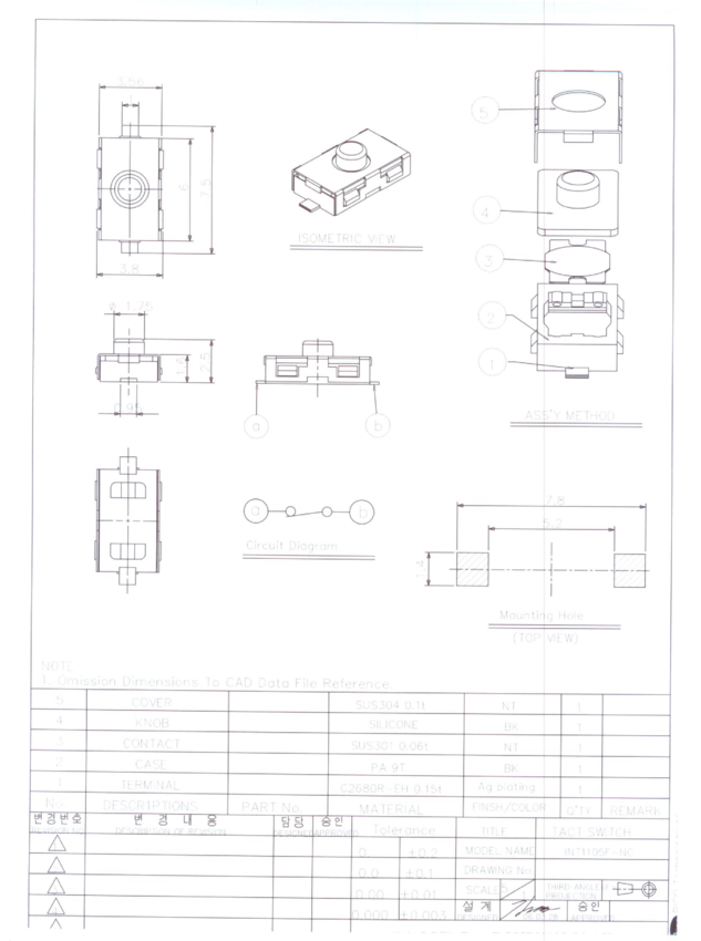 TACTPD1105FNC Łącznik Tact Switch, (NC), , w stanie spoczynkowym - zwarty, DC 32V 50mA, ż...