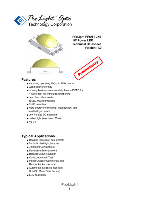 LED-PP6N-1LAE Dioda LED High Power, 592nm, 42 lm, 1W/350mA, Lambertian-Emitter