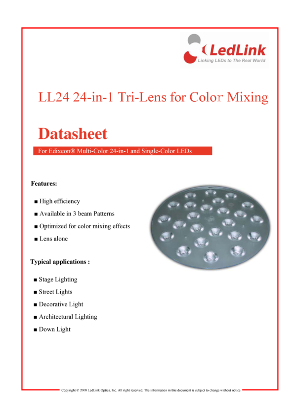 Soczewka LL24ED-AB25L, 25&deg, D: 175mm, H: 12.6mm, do diod LED High Power CREE seria XR-E, LedLink