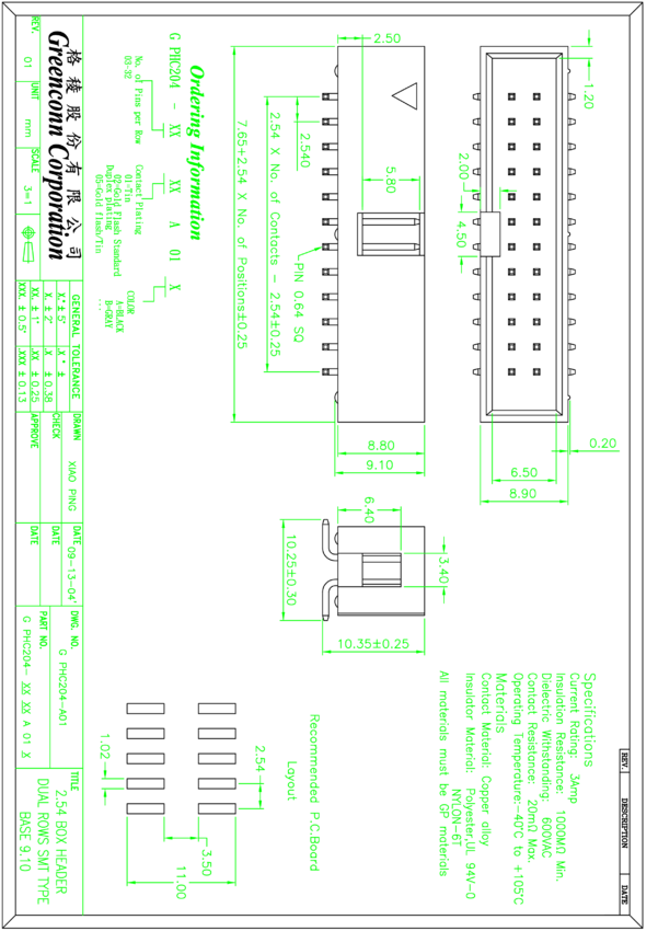BHT10S Złącze proste, 10-kołkowe, SMT