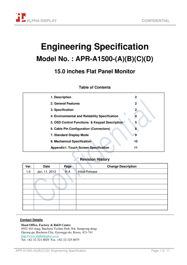 TFT-APR-A1500-RRAB , z rezystancyjnym panelem dotykowym, 1024x768 (4:3), jasność 400 cd/m2, VG...