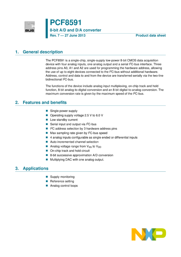 PCF8591P 8-bit przetwornik AD/DA, IC interfejs, DIL16