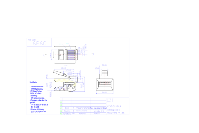 TPLUG6P6C-LF Wtyk , 6-stykowy, gabaryt 6, Au 3u" , na przewód okrągły, linka