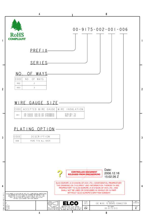CLED9175-002 Złącze AVX 00-9175-002-001-006, 2 kontakt., SMT, do przewodów , kontakt typ...