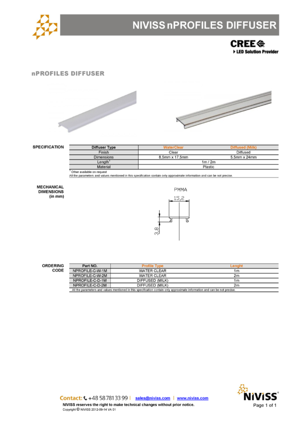 NPROFILE-C-D-1M dyfuzor do profili aluminiowych, wersja mleczna