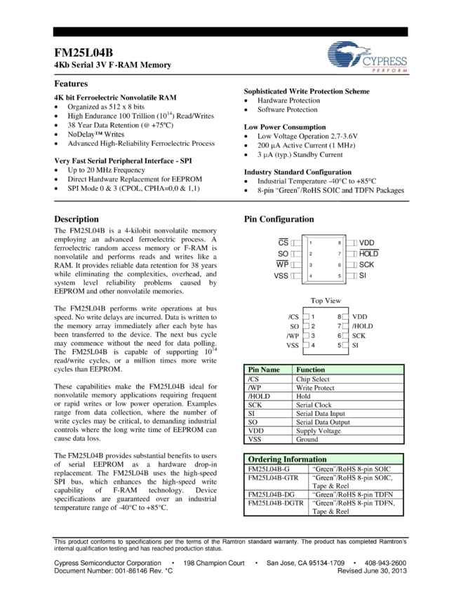 FM25L04B-G Pamięć szeregowa FRAM, FM25L04B-GTR, 4Kb, interfejs SPI, SO8, Ramtron