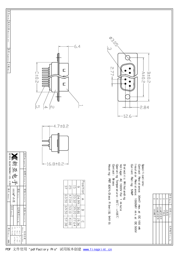 DI25P-LF Złącze męskie D-Sub, 9-stykowe, proste