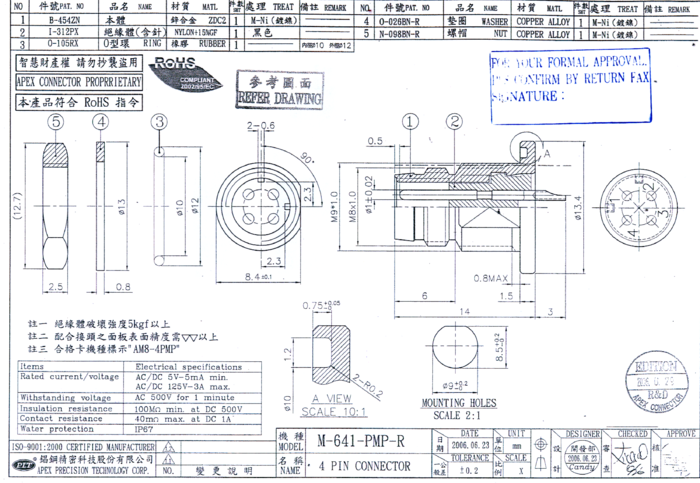 WPC-M0804SM-LF Gniazdo męskie, 4-stykowe z połączeniem gwintowanym M8