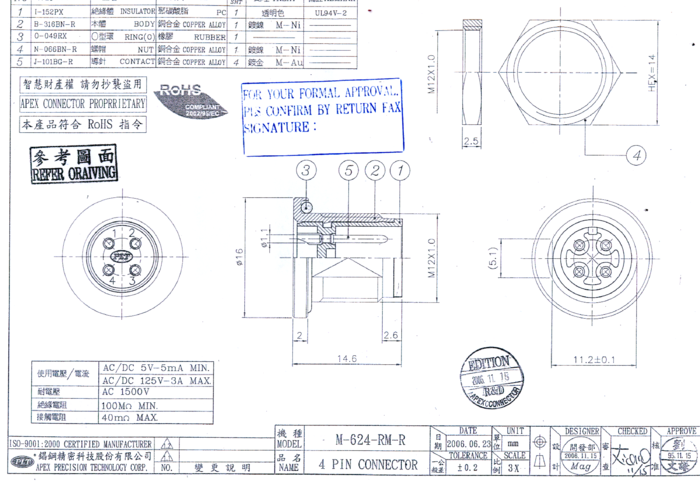 WPC-M1204SM-LF Gniazdo męskie, 4-stykowe, z połączeniem gwintowanym M12