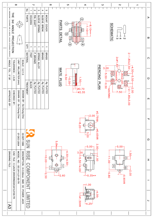 DC065SMTB Gniazdo męskie z kołkiem Ø0.65 mm, otwór DØ2.75 mm, z obejmą mocującą