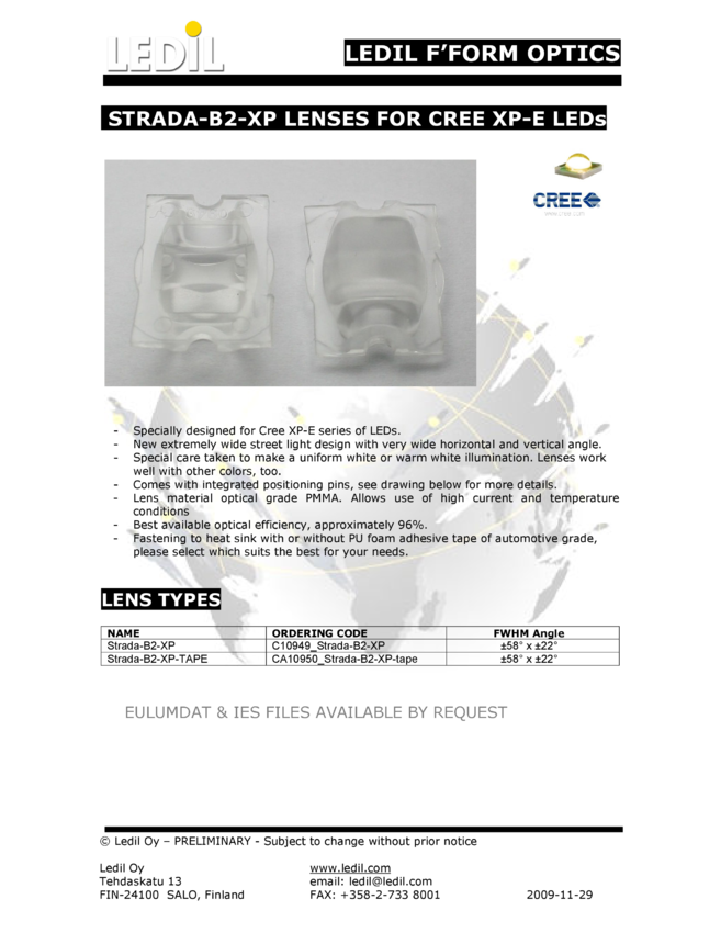 LENS-STRADA-B2-10949 Soczewka STRADA-B2-XP, ±56&deg x ±21.5&deg, z pinami pozycjonującymi, do di...