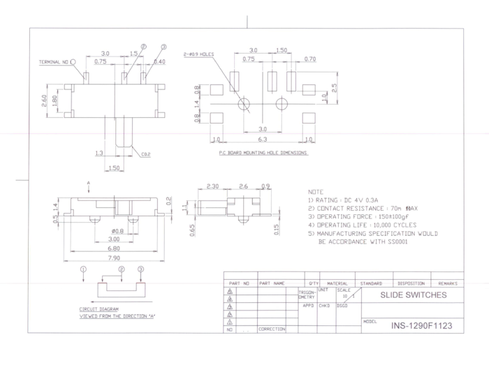 SW-SD1290F123 Sub-miniaturowy przełącznik suwakowy, kątowy, 1-biegowy typu 1C, SMT