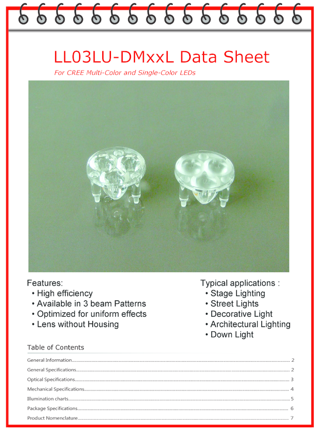 Soczewka LL03LU-DM40L, , do 3 x diod LED High Power CREE seria XP, micro lens, LedLink