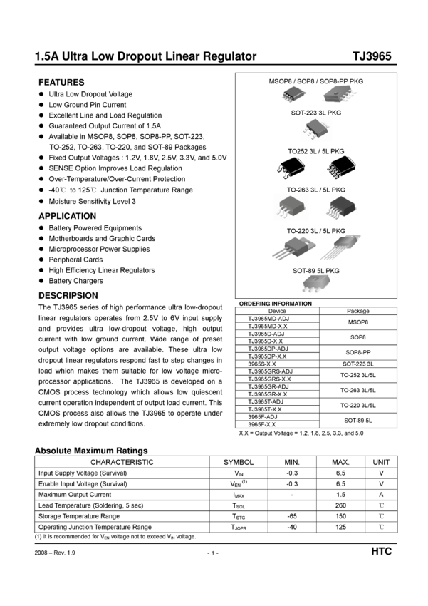 LM3965S-1.8 Stabilizator napięcia ULDO, +1.8V, 1.5A, SOT223, ROHS
