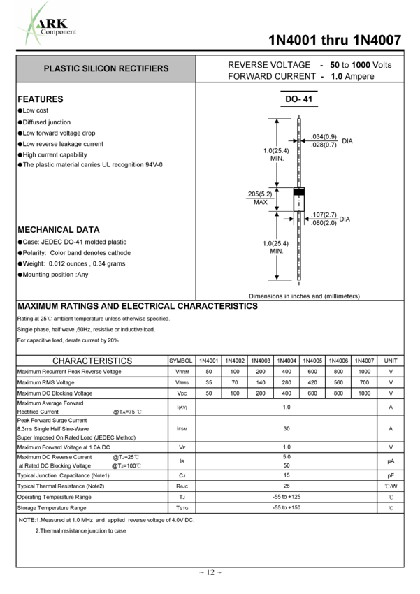 Dioda 1A, 1000V, DO41 LGE, ARK