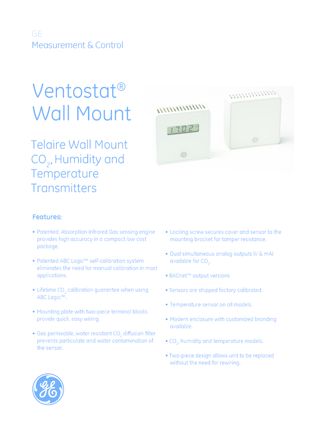GE-T8100-E-HD Przetwornik dwutlenku węgla (CO2), wilgotności i temperatury, naścienny,wyj...