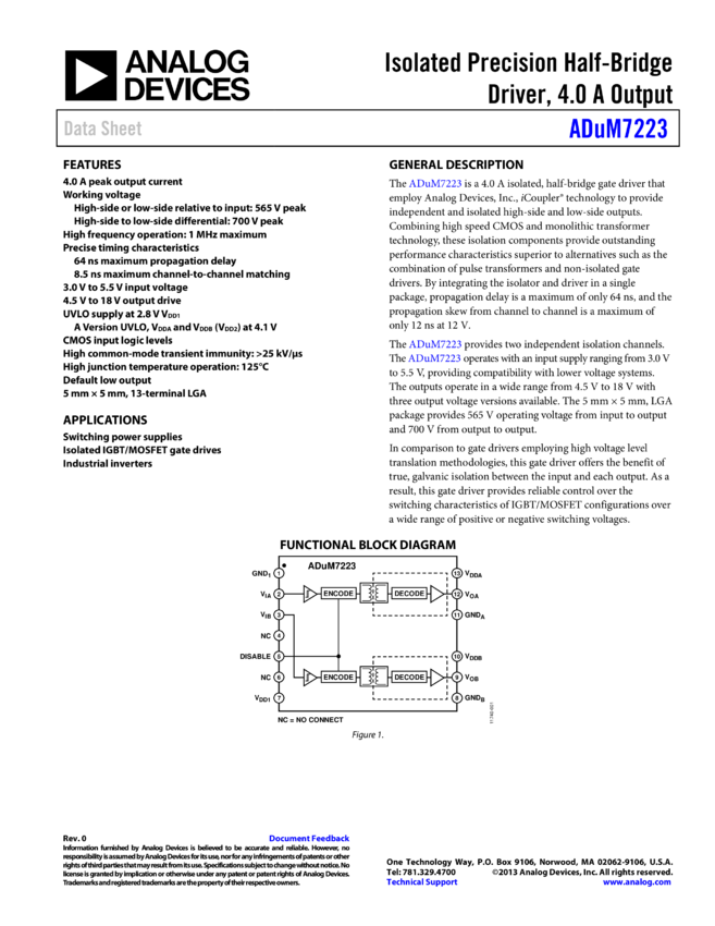 ADUM7223: Isolated Precision Half-Bridge Driver, 4 A Output