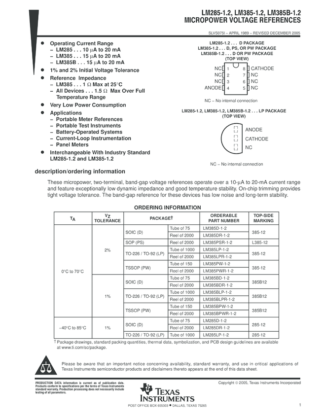 LM385Z-1.2D Zródło napięcia, U=1.235V±1%, SO8