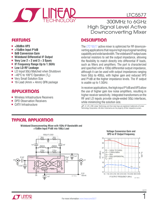 LTC5577 300MHz to 6GHz High Signal Level Active Downconverting Mixer