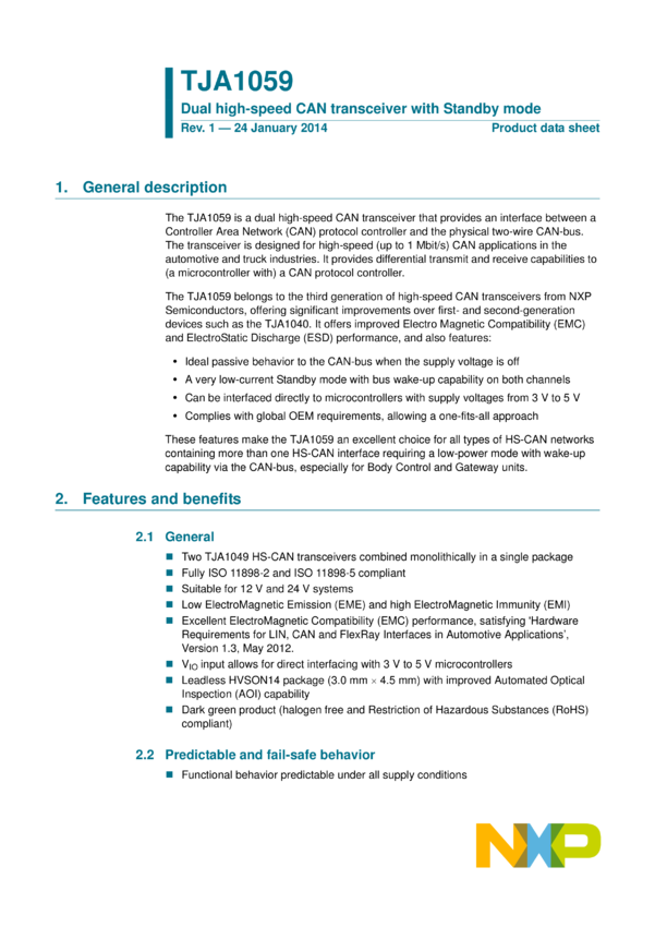 TJA1059 Dual high-speed CAN transceiver with Standby mode